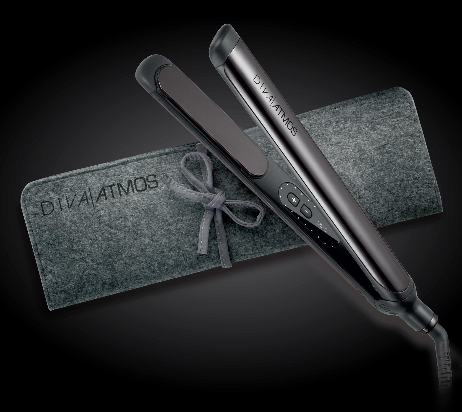 Atmos profesionalus tiesintuvas – 25mm. Diva Pro Styling Atmos pirmieji rinkoje įrankiai, turintys adaptyvią šilumos technologiją, kuri nuolat reguliuoja plokštelių temperatūrą, kad šukuosenos metu būtų užtikrinta pastovus karštis nuo šaknų iki galiukų.