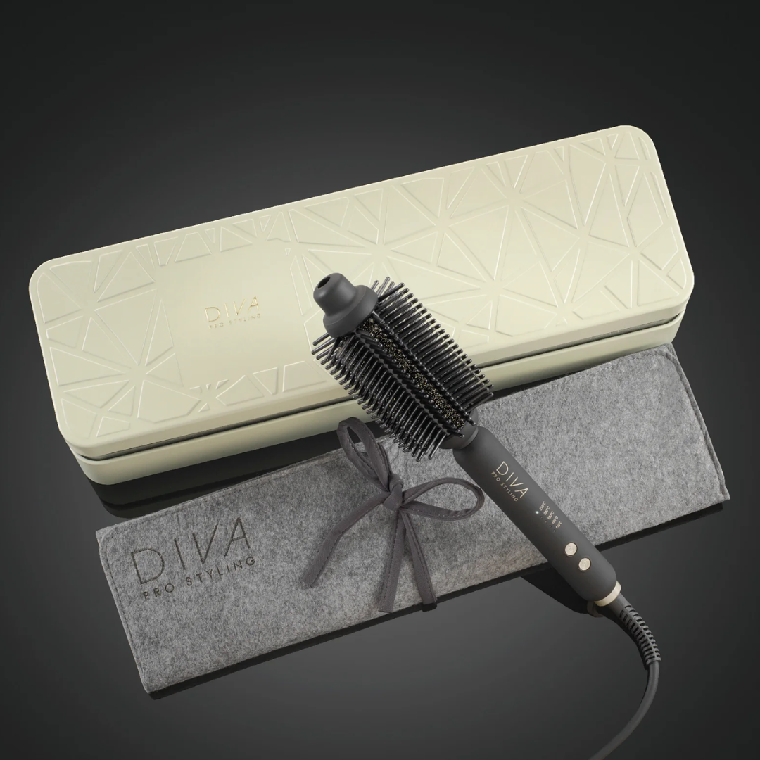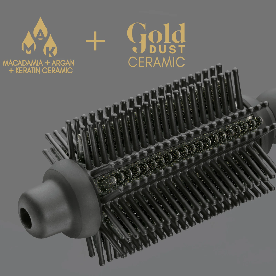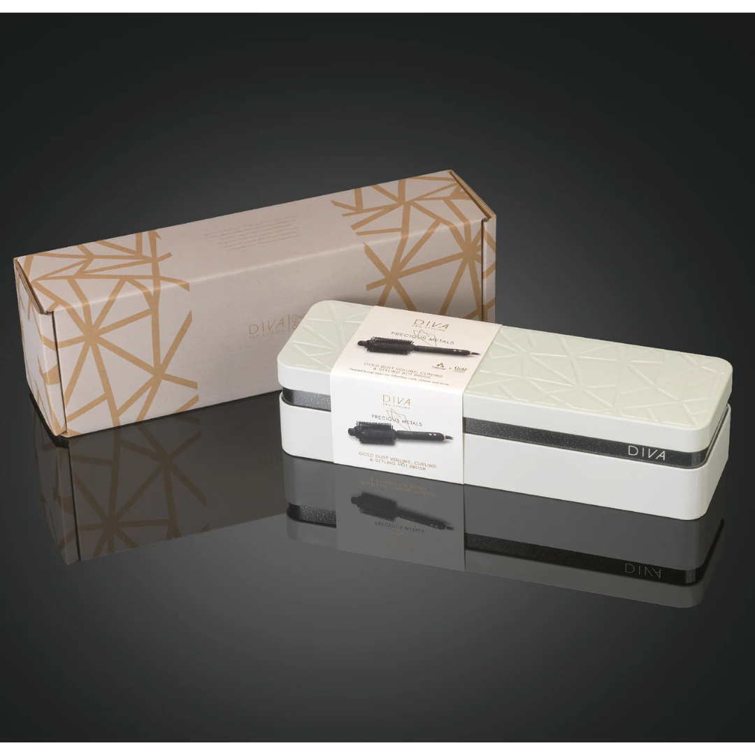 Pasiekite tobulas, ilgai išliekamas garbanas, apimtį ir spindesį su Diva Pro Styling Precious Metals Gold Dust Full Volume, Curling & Styling Hot Brush garbanojimo šukomis. Aukso dulkių keramikiniai šereliai, praturtinti makadamijų, argano aliejais ir keratinu, užtikrina švelnų plaukų apdorojimą ir nepakartojamą žvilgesį. Su skaitmenine temperatūros kontrole ir greitu įkaitimu, šis įrankis leidžia sukurti stilių greitai ir lengvai.