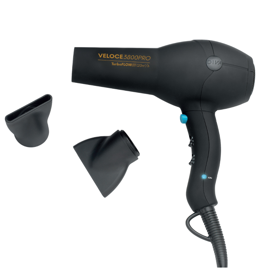 Patirkite saloninės kokybės džiovinimą su Diva Veloce 3800 Pro. Šis profesionalus įrankis derina galingumą, komfortą ir stiliaus kontrolę – idealus pasirinkimas tiems, kurie vertina greitį, glotnumą ir galimybę formuoti.