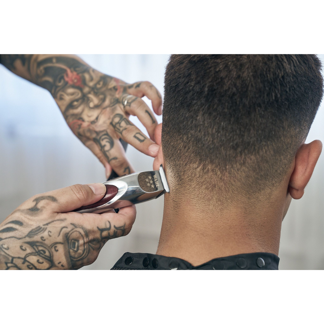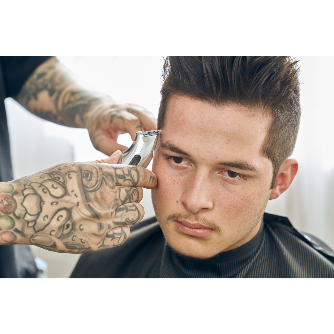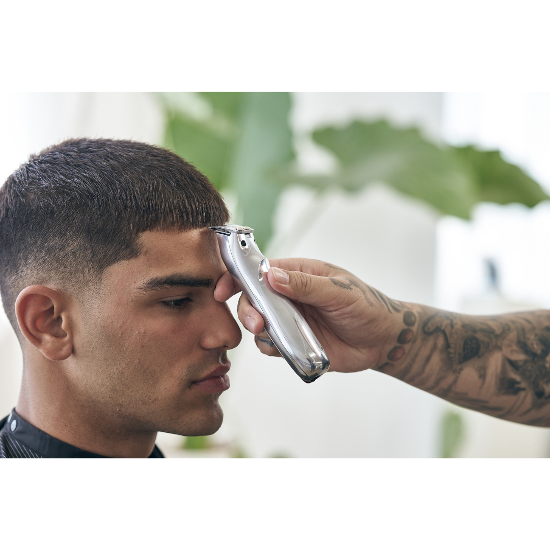 Naujos kartos profesionalus trimeris, sukurtas preciziniam darbui net pačiose sudėtingiausiose vietose. Atnaujintas, siauresnė kirpimo galvutė T blade suteikia maksimalų matomumą, todėl kontūravimas tampa dar tikslesnis ir greitesnis. Zero gap funkcija leidžia pasiekti itin trumpą pjūvį, idealiai tinkantį linijavimui, barzdos kraštams, kaklo zonai ir smulkioms detalėms. Galingas rotacinis variklis užtikrina sklandų darbą, o ergonomiškas, subalansuotas korpusas sumažina rankos nuovargį net intensyviai dirbant visą dieną. Iki 3 valandų trunkantis belaidis veikimas suteikia visišką laisvę, o LED indikatorius leidžia lengvai stebėti baterijos būseną. Ypač lengva, tik ~130g. Tai patikimas, profesionalams skirtas įrankis, sukurtas pagal WAHL šimtmečio patirtį ir aukščiausius kokybės standartus.