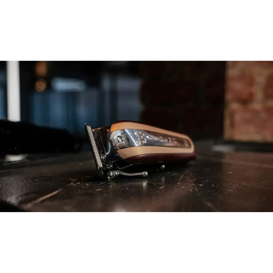 Profesionali belaidė plaukakirpė, sukurta kirpėjams, kuriems reikia platesnio kirpimo diapazono, tikslesnių perėjimų ir didesnės kontrolės. Šio modelio širdis – 5 Star Wedge Blade galvutė, pasižyminti prailgintu dantukų profiliu ir „Crunch“ technologija, kuri suteikia garsinį grįžtamąjį ryšį atliekant „fade“ kirpimus. Tai leidžia lengviau išgauti švarius, tolygiai susiliejančius perėjimus net ant tankių ar šiurkštesnių plaukų. Efektyvi Li Ion baterija užtikrina iki 100 min. veikimo ir greitą įkrovimą, todėl įrankis puikiai tinka intensyviam darbui salone. Lengvas, ergonomiškas korpusas ir platus taper lever reguliavimo diapazonas suteikia daugiau lankstumo formuojant ilgį ir tekstūrą. Komplekte rasite 8 Premium antgalius (1.5–25 mm). Lenkgva – tik 295 g. Cordless Legend – idealus pasirinkimas barberiams, siekiantiems platesnių „fade“ galimybių, sklandaus darbo ir profesionalaus rezultato kiekviename kirpime.
