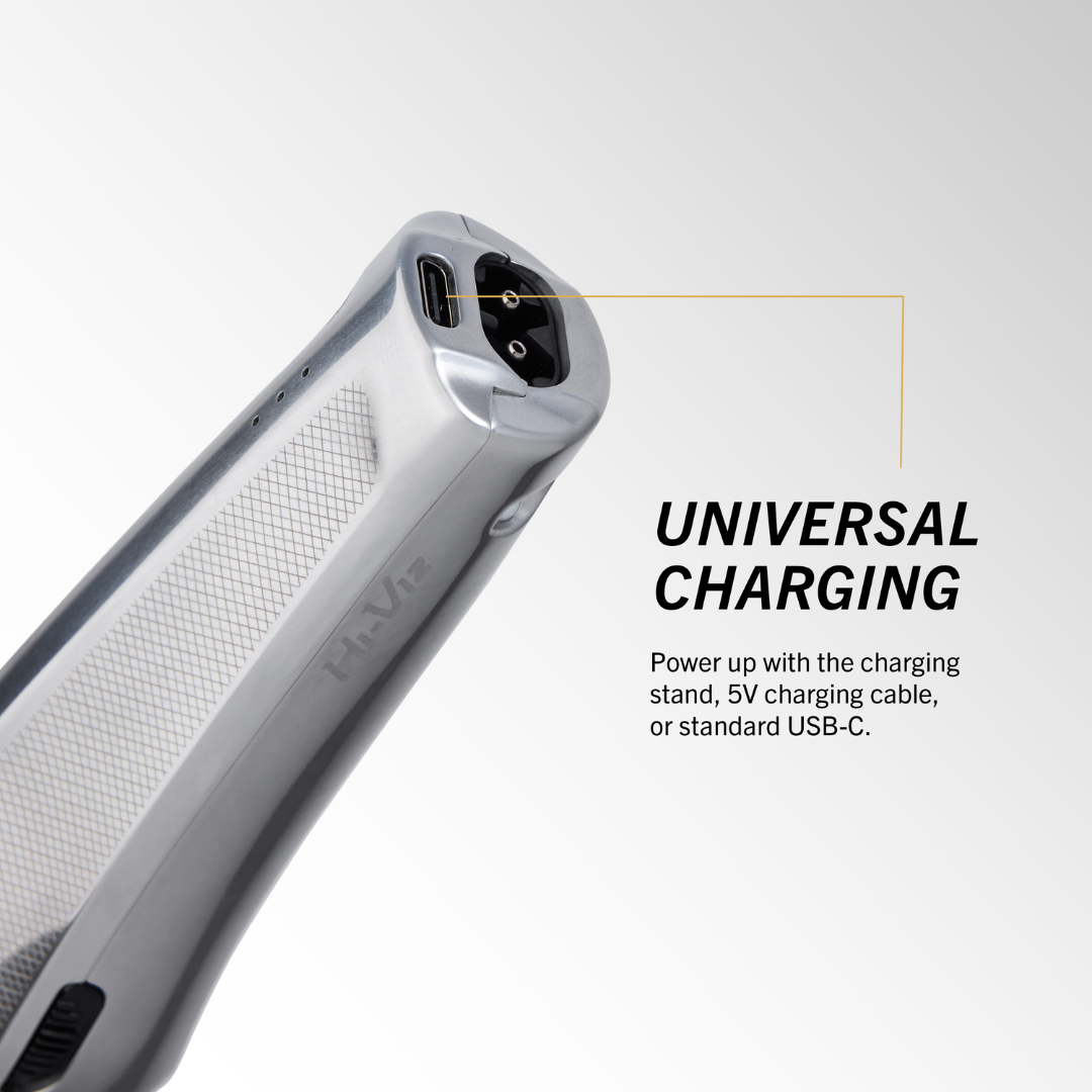 Profesionalus kontūravimo trimeris, sukurtas maksimaliam matomumui ir precizikai. Naujos kartos Hi Viz™ T Blade peiliukas su itin siauru kakleliu leidžia aiškiai matyti kirpimo liniją, todėl kontūrai tampa dar tikslesni ir švaresni. DLC danga užtikrina ilgaamžiškumą, mažesnį įkaitimą ir sklandų slydimą, o zero gap galimybė suteikia visišką kontrolę formuojant linijas bei detales. Trimeris turi Adaptive Speed Control technologiją, kuri automatiškai reguliuoja variklio galią pagal plaukų tankį, išlaikydama pastovų našumą. Galinga baterija veikia iki 135 minučių, o greitas 45 min įkrovimas leidžia įrankį naudoti intensyviame darbo ritme. Įkrauti galima USB C, laidu arba naudojant komplekte esantį įkrovimo stovelį. Metalinis, ergonomiškas korpusas su ComfortCurve™ forma suteikia stabilų sukibimą ir tikslų valdymą. Tai idealus pasirinkimas barberiams, kuriems reikia patikimo, tikslaus ir universalaus trimerio kasdieniam darbui.