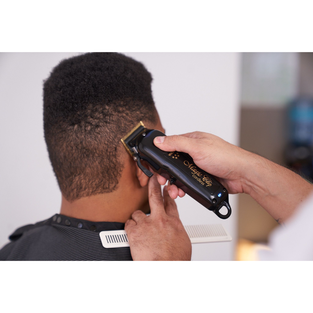 Atnaujinta legendinės Magic Clip versija, sukurta profesionalams, siekiantiems nepriekaištingų „fade“ perėjimų ir maksimalaus tikslumo. Patobulintas, galingas variklis (6500 aps/min) lengvai įveikia įvairaus tipo, tekstūros ir tankio plaukus, todėl kirpimas tampa greitesnis ir sklandesnis. Pagrindinis privalumas – patentuota Stagger Tooth™ kirpimo galvutė, kurie tolygiai paskirsto plaukus ir leidžia išgauti itin švarius perėjimus be matomų linijų. Ašmenys padengti titano ir DLC sluoksniais, todėl jie yra ypač patvarūs, atsparūs korozijai ir išlieka vėsūs viso darbo metu. Integruota Crunch Blade Technology™ suteikia aiškų garsinį grįžtamąjį ryšį – kirpimo metu girdimas specifinis „crunch“ garsas padeda tiksliai nustatyti, kada visi plaukai jau nukirpti. Stilingas juodas dizainas, belaidis veikimas ir profesionali konstrukcija daro šią mašinėlę puikiu pasirinkimu tiek barbershopams, tiek meistrams, dirbantiems mobiliai. Veikia nuo akumuliatoriaus ar el. tinklo, kirpimo ilgis reguliuojamas rankenėle 0,5-1,2 mm, lengva – 290g. Komplekte 8 Premiuim antgaliai, šukos.