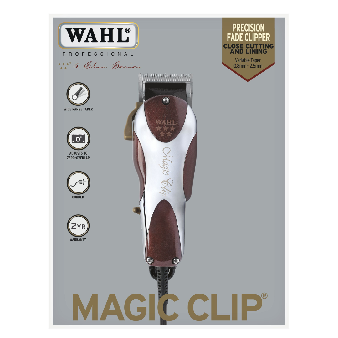 Profesionali laidinė plaukakirpė kirpėjams, kuriems reikia tikslumo, galios ir patikimo veikimo visą dieną. Šis modelis turi V5000 profesionalų variklį, pasižymintį ilgaamžiškumu ir pastovia galia net intensyviausio darbo metu. Dėl lengvo, ergonomiško korpuso Magic Clip puikiai tinka tiek masės nuėmimui, tiek tiksliems perėjimams ir „fade“ technikoms. Mašinėlė komplektuojama su precizine Fade Blade galvute, kuri gali būti reguliuojama iki „0“ overlap, todėl leidžia pasiekti itin trumpą kirpimą ir švarius, odai artimus perėjimus. Reguliuojamas kirpimo ilgis (0,5–1,2 mm) suteikia daugiau kontrolės formuojant linijas ir tekstūrą. Chromuotas dizainas ne tik atrodo profesionaliai, bet ir užtikrina didesnį atsparumą kasdieniam naudojimui. Komplekte yra 8 antgaliai (1,5–25 mm), šukos, alyva, valymo šepetėlis ir apsauginis peiliuko dangtelis. Magic Clip – tai patikimas, universalus ir tikslus įrankis, skirtas profesionalams, siekiantiems nepriekaištingų „fade“ rezultatų ir sklandaus darbo salone.